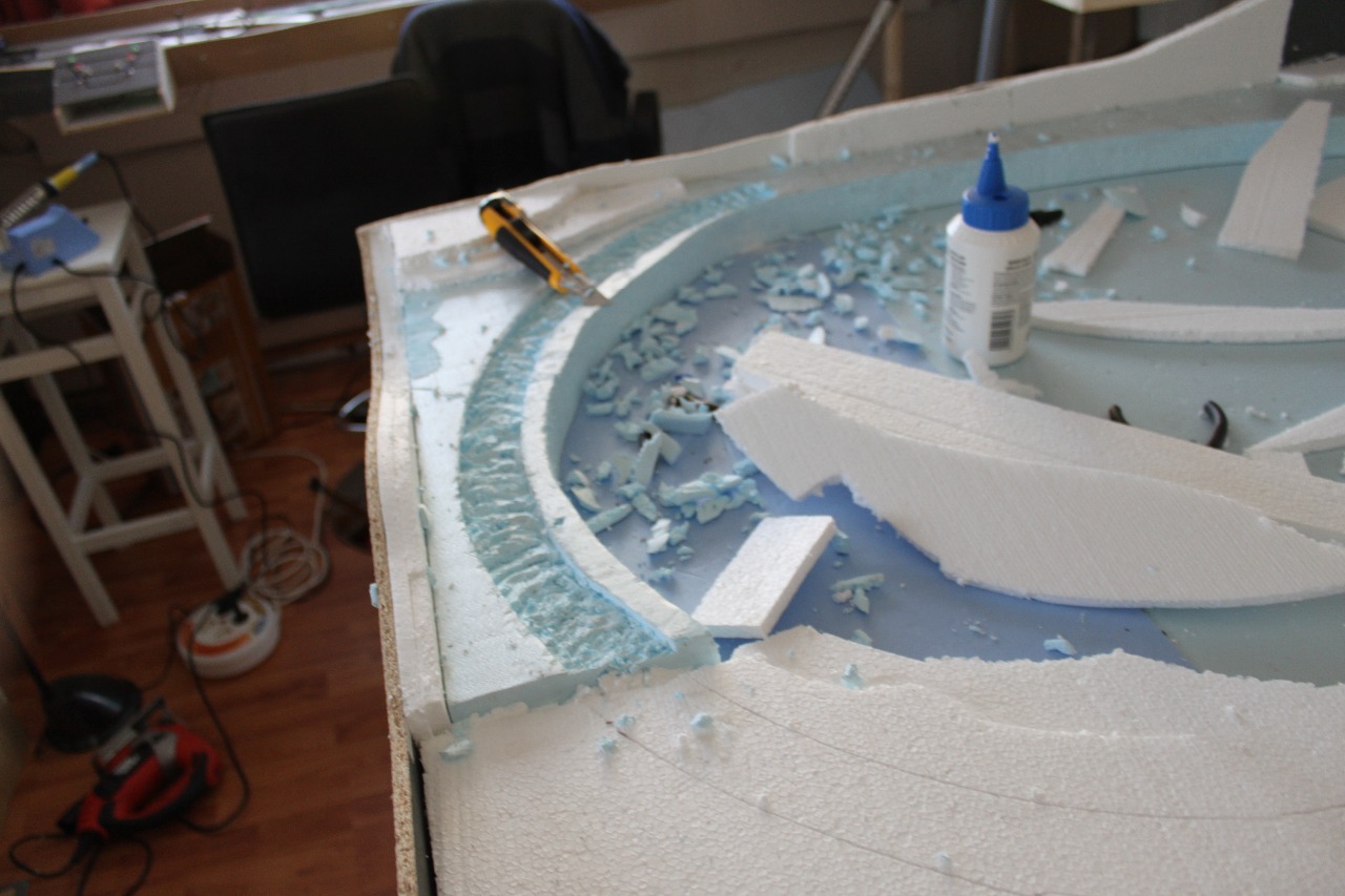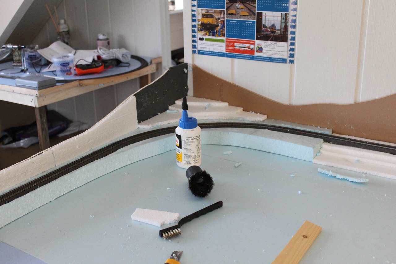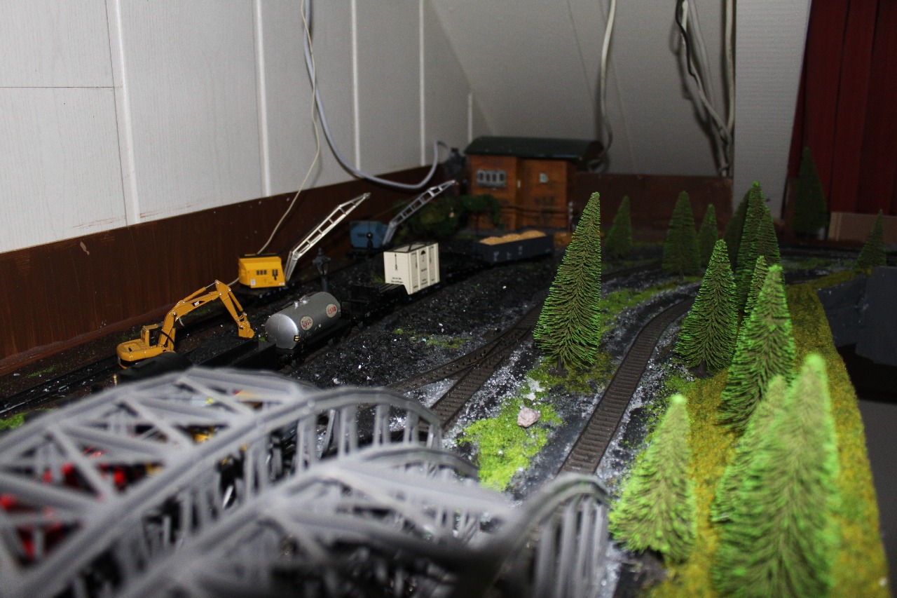 Vorig weekend ben ik met Tim en zijn schoonvader naar de grote tentoonstelling van Eurospoor in de Utrecht geweest. Daar waren meer dan 50 modelbanen! Erg mooi omdat eens te bekijken. Daar ben ik redelijk goedkoop aan twee engelse wissels en twee gewone wissels gekomen. Deze in de baan gebouwd en voor de elektrische bediening een kastjes gebouwd waarmee de bediening weer wat gemakkelijker gaat.