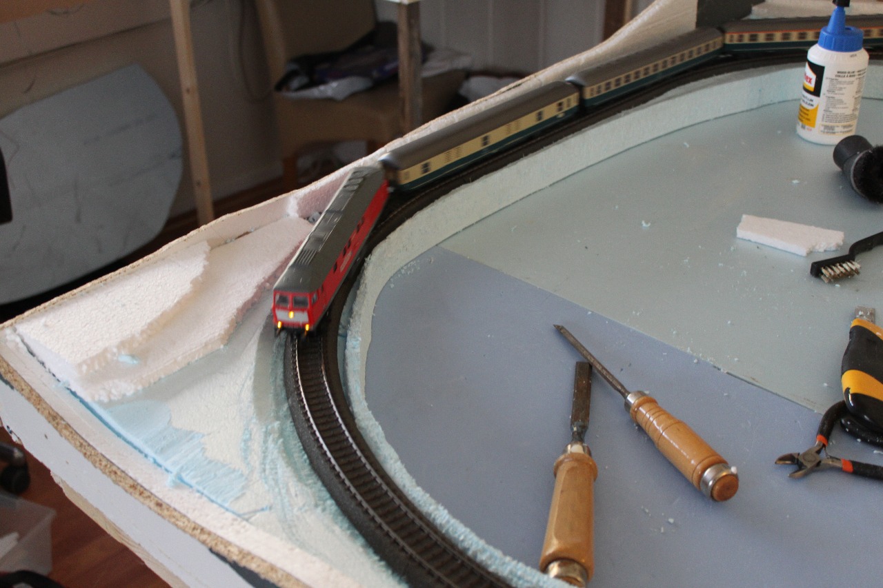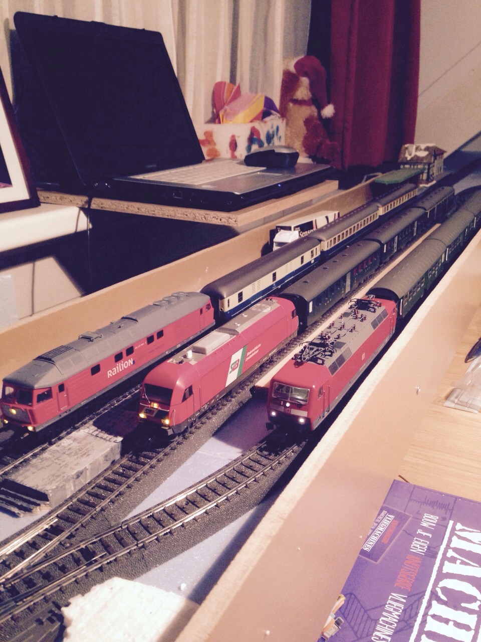 Tijdens onze nazomerkantie op de Veluwe hebben Joke en ik besloten de treinbaan in de garage af te breken en deze op te bouwen in één van de slaapkamers. Ongeveer 2 jaar geleden was ik begonnen hiermee in de garage. Deze had een grootte van ongeveer 4,50 bij 1,30 meter, gebouwd op het onderstel van twee oude tafels en voorzien van wieltjes. De meeste werktijd werd in de winter gedaan en dat viel vanwege de kou niet altijd mee. De garage is niet verwarmd en de bereikbaarheid op de tafel zelf was ook niet ideaal. En de baan nam de nodige ruimte in.